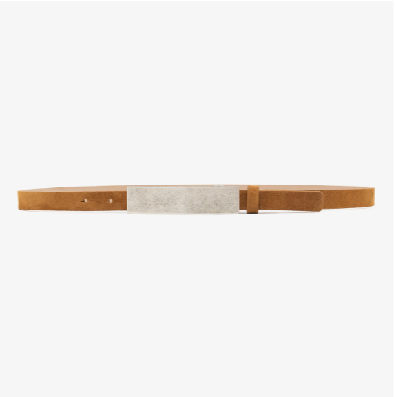 The Kaia Belt is a refined essential, crafted from soft cognac Italian suede and paired with an old silver-plated bar buckle. Minimalist in design and warm in tone, this belt brings quiet sophistication to any ensemble.