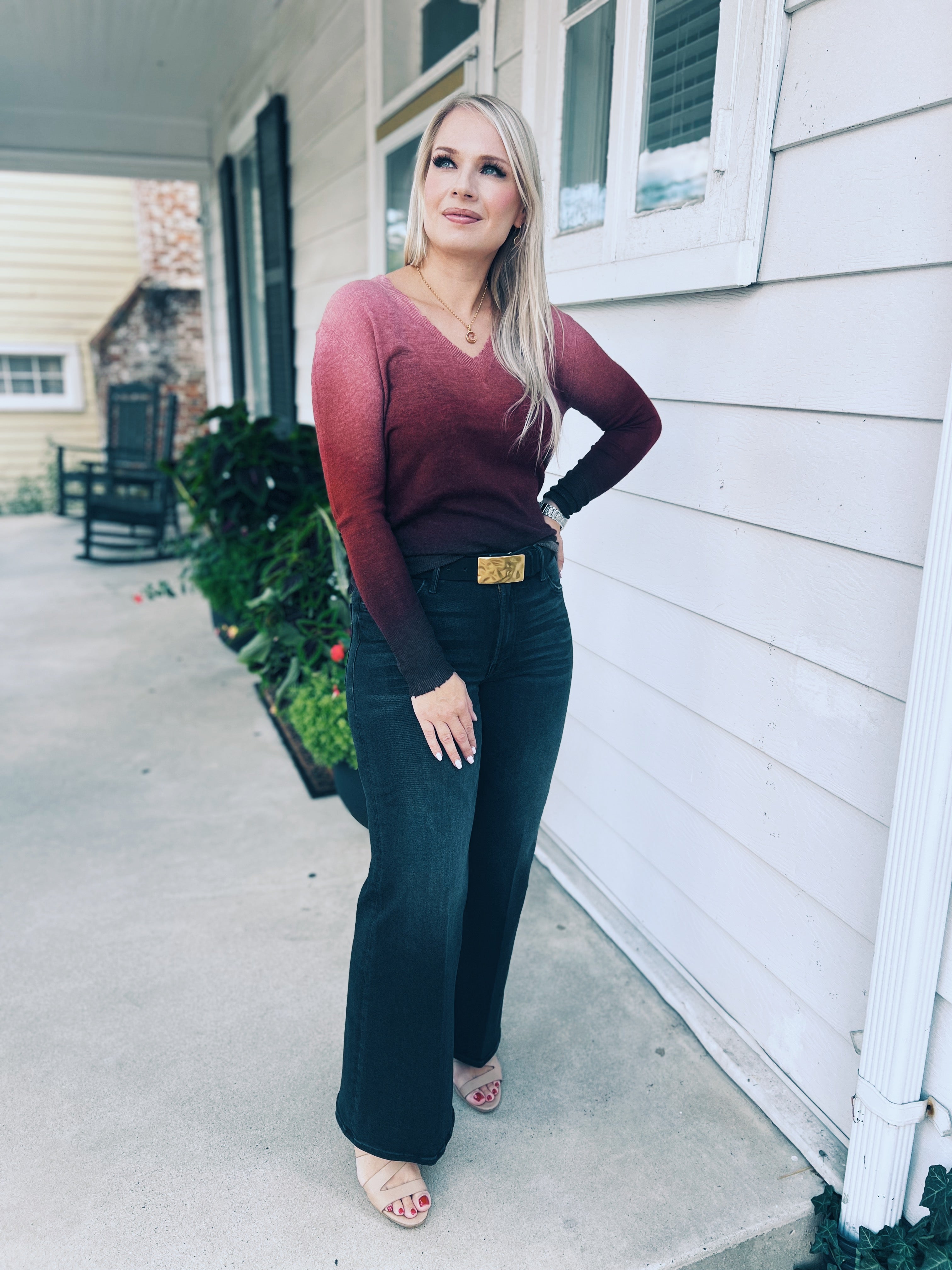 Autumn Cashmere Ombre Print Distressed Edge V Neck-Barn Combo