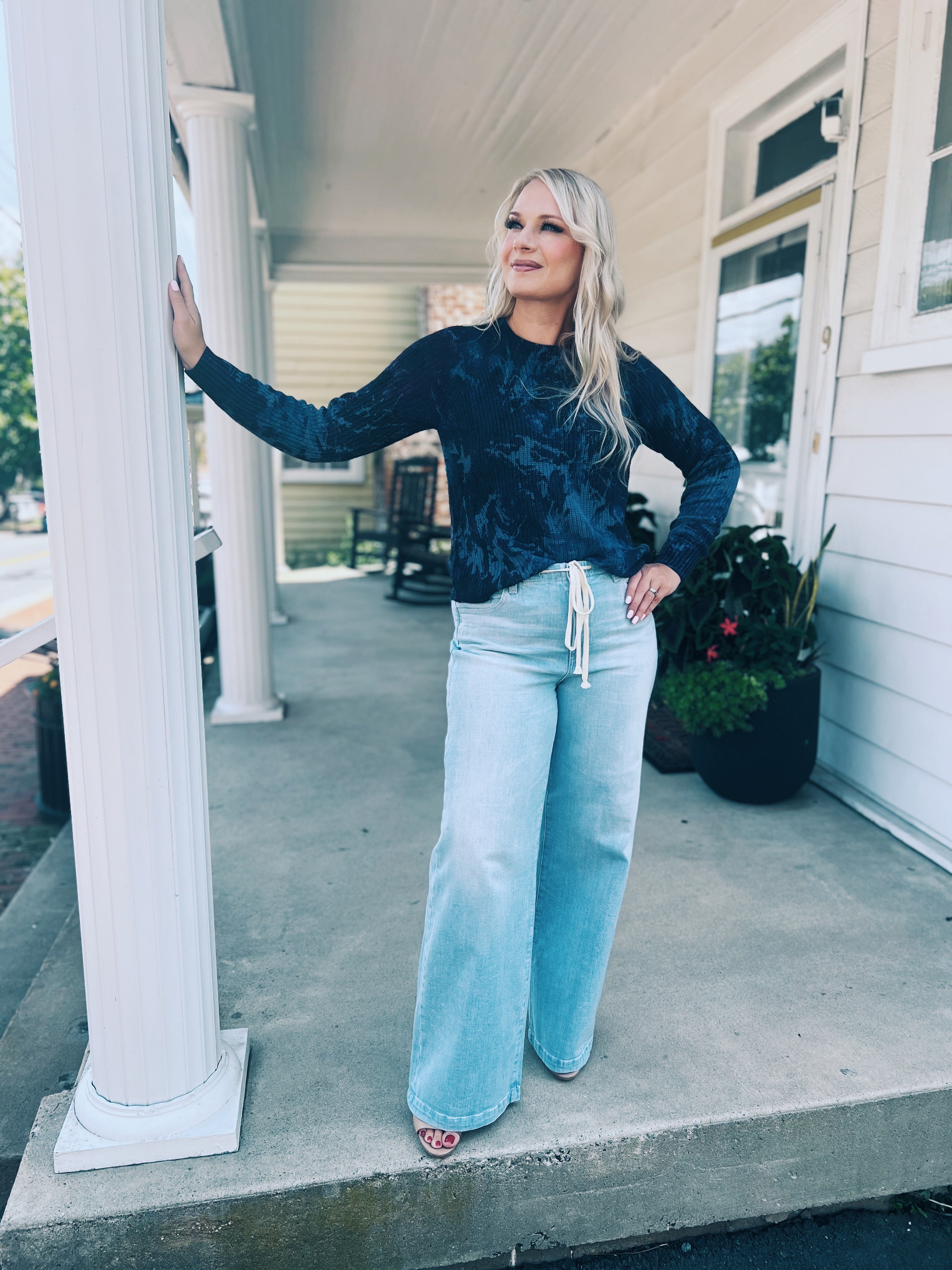Autumn Cashmere Splatter Print Scallop Shaker-Blue Multi