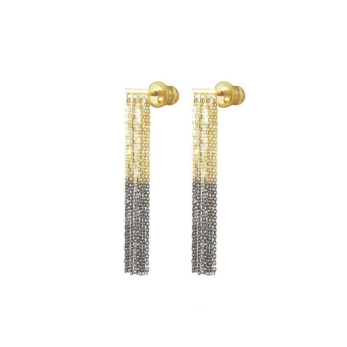 Pair of bicolor Sterling silver earrings composed of forçat chain tassels dip-dyed in yellow gold and ruthenium.
