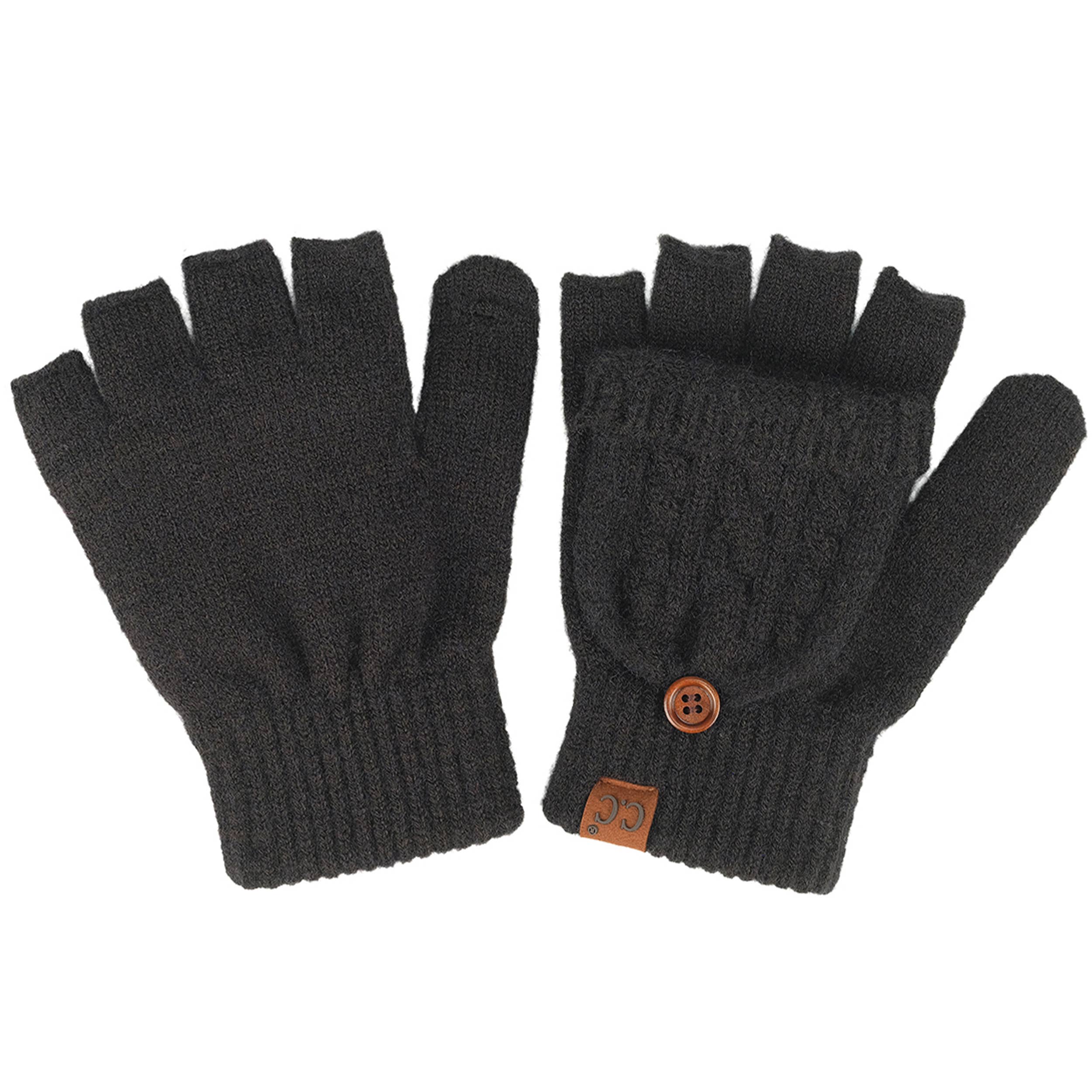 C.C Cable Knit Pattern Convertible Flips Mitten Gloves