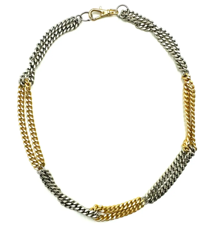 Add a touch of edginess to your look with this mixed metal curb necklace Length 17" 18 kt gold over brass & silver rhodium plate