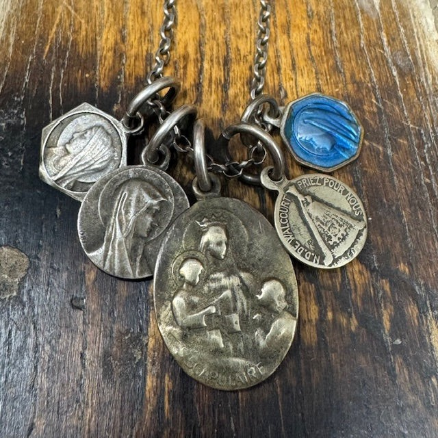 A soulful assemblage of antique French devotional medals, each carrying a whisper of time.