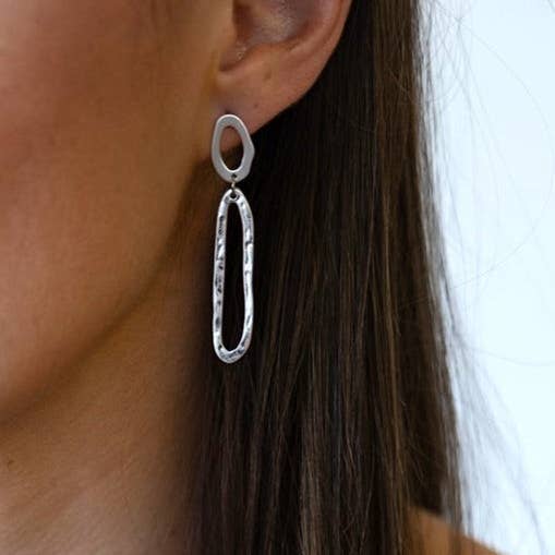 An easy go-to accessory, this pair of silver drop earrings feature a unique swirl design with a hammered texture and oval cutout studs. Designed with the modern woman in mind, wear these easy-to-style earrings to complete a casual look.