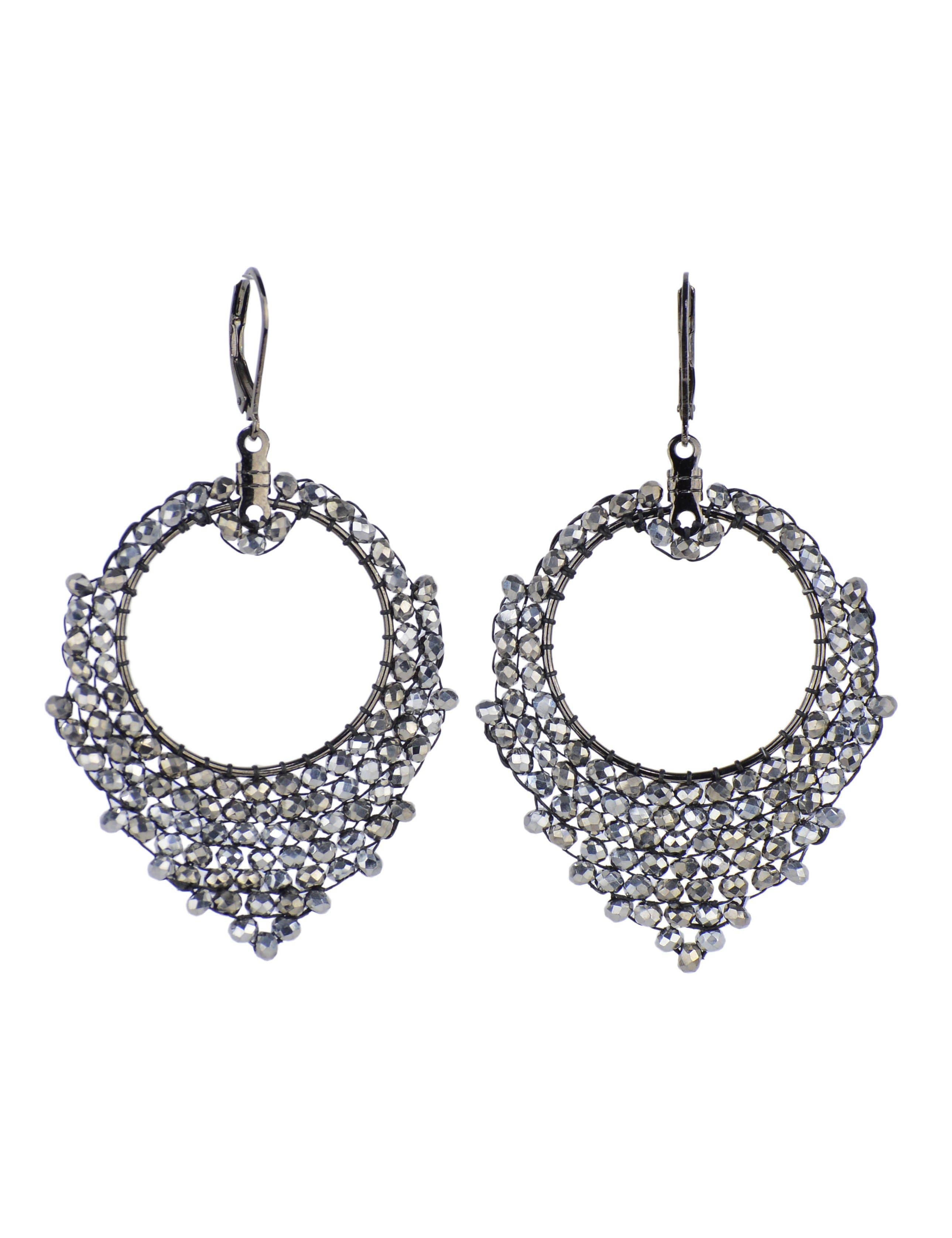 Handwoven cut crystal earrings. Solid sterling silver earring levers. Measures 2” in length, excluding ear lever. This item is handmade to order.