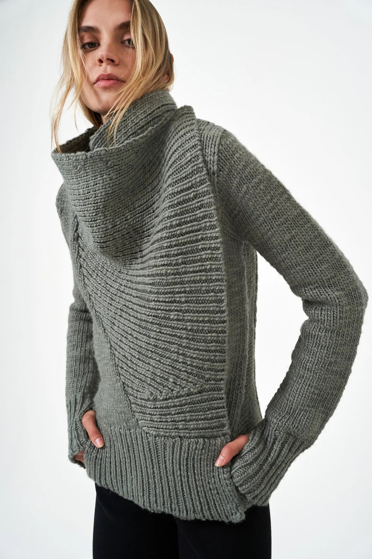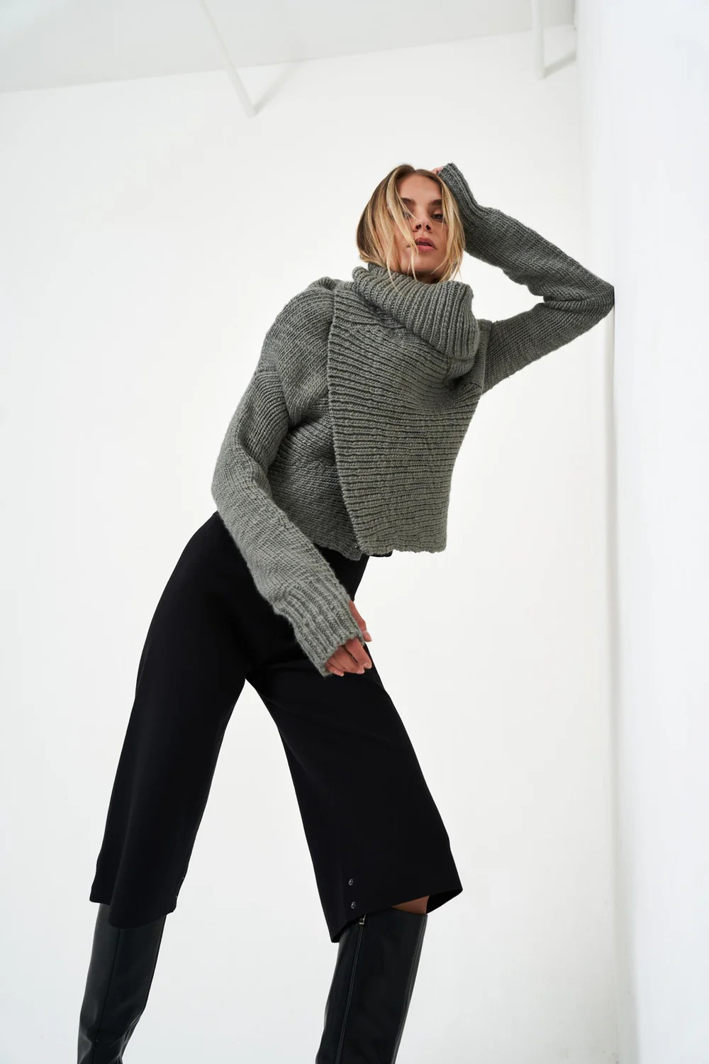 Easy chunky lounge cardigan, converts upside-down for coverup cropped form. Thumbholes and side entry pockets in hems. FIT: Easy shape with slim sleevesCONTENT: 100% Wool SlubCARE: Hand wash with gentle detergent and lay flat to dry, or dry clean