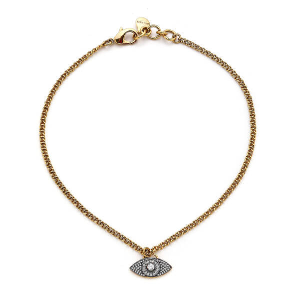 Mon Reve Rue Zircon Gold Plated Eye Chain Necklace