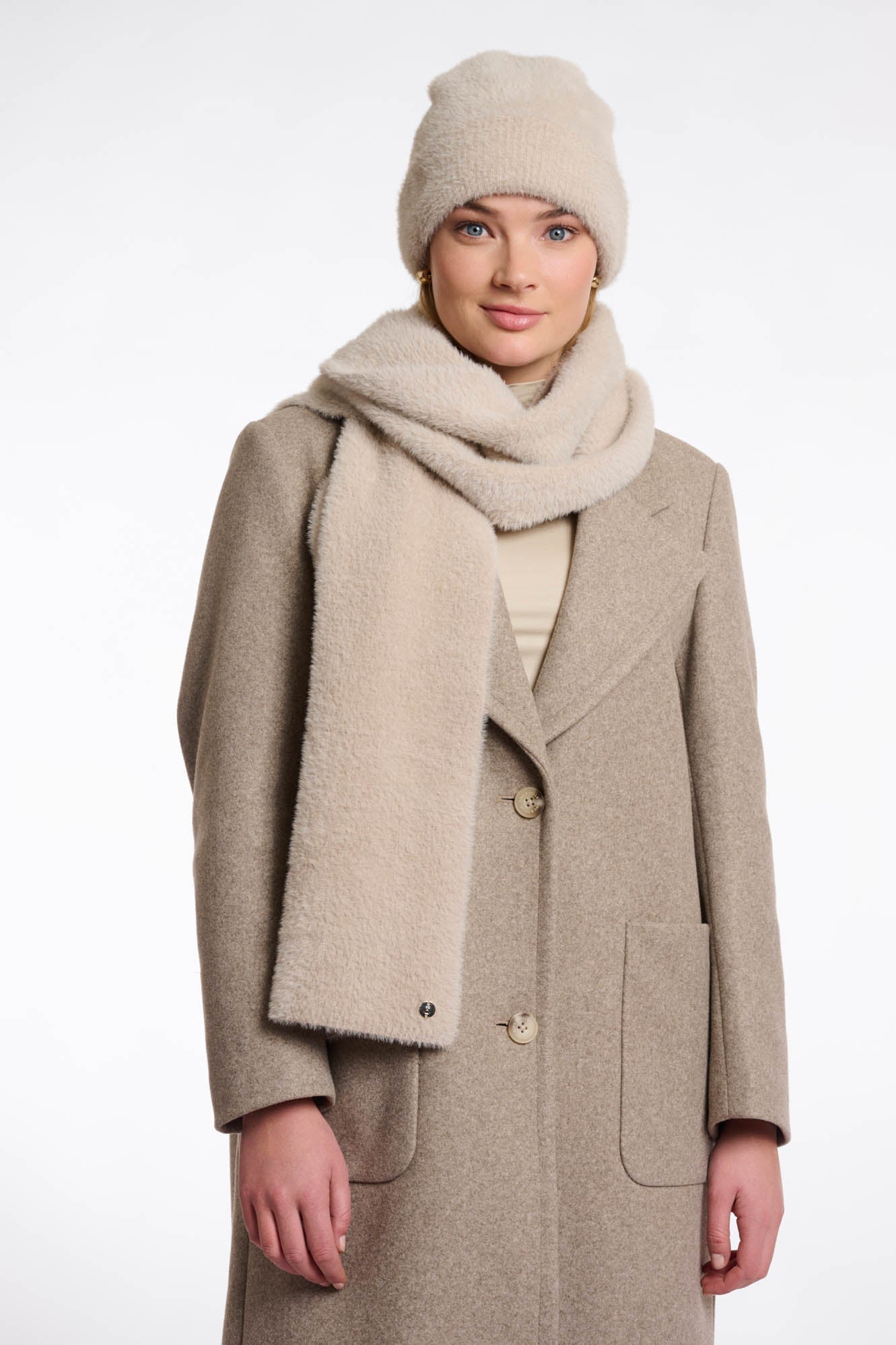 Wrap yourself in artistry. This beautiful knitted scarf features a striking graphic design, crafted from our signature, supremely soft material. Experience the perfect blend of warmth and style.