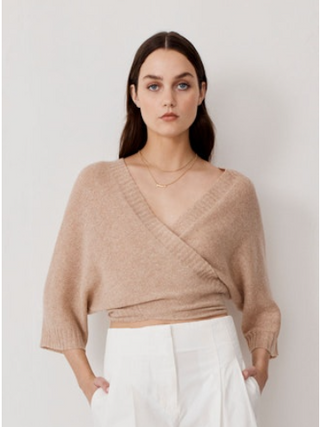 Autumn Cashmere Loose Gauge Dolman Tie Front Cardigan- Buckwheat