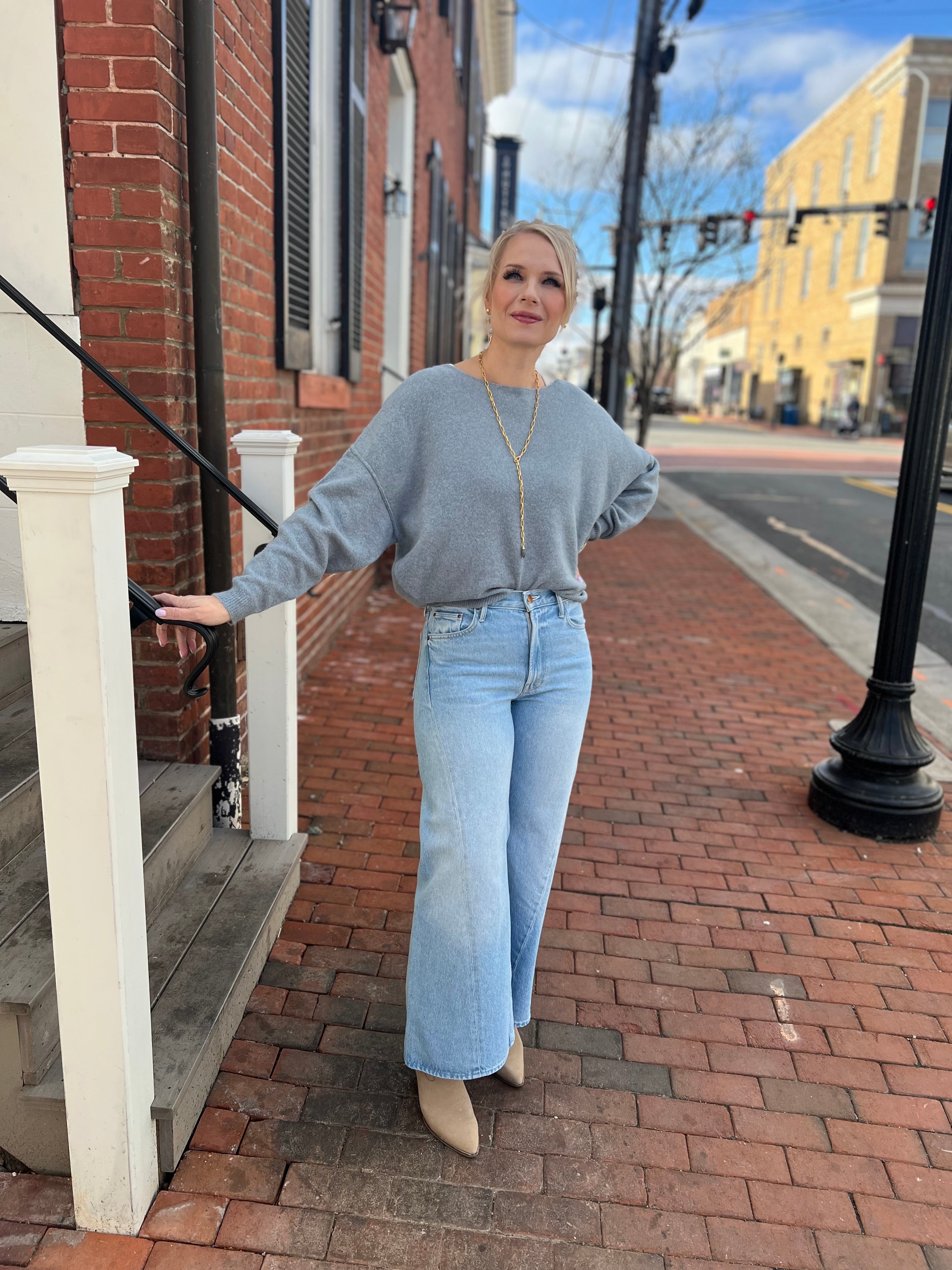 The Damsville jumper for women is a wardrobe essential, appreciated for its knit with a soft feel and enveloping comfort. Its loose fit and boat neck create a naturally casual shape. It embodies a style that is both sporty and timeless, and easy to wear season after season. Iconic and versatile, this jumper is a gentle, simple addition to everyday moments, and can be worn over a top or dress as required.