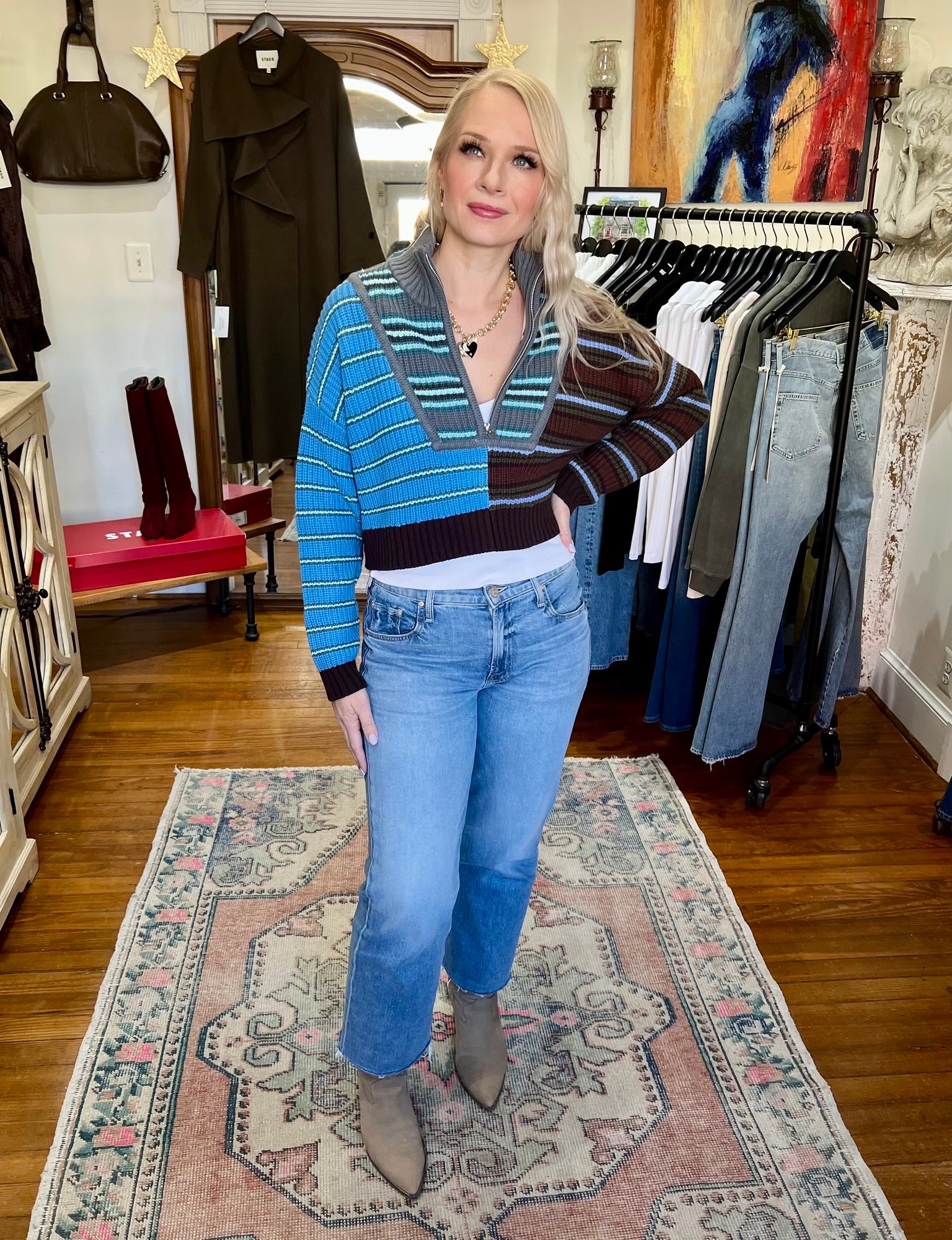 A cropped update to our best-selling sweater. This style is made from chunky cotton knit with half zip detail down the front.