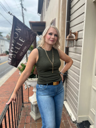 Lilla P Rib Slub Side Pleat Tank-Dijon or Lichen