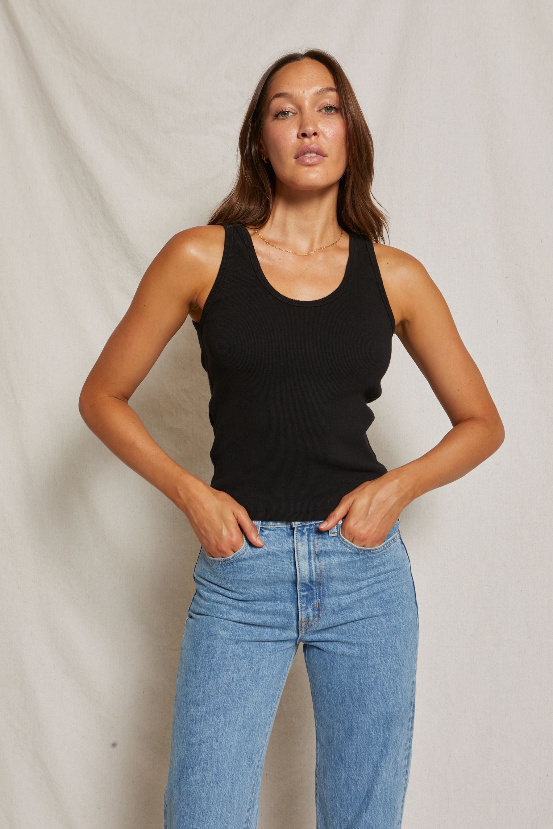 Perfectwhitetee Debbie Structured Rib Bra Friendly Tank-Black or White