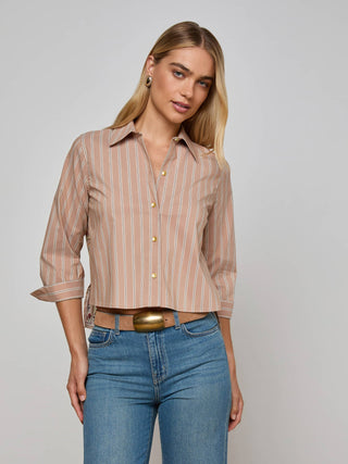 L'Agence Fawn Scarf Back 3/4 Sleeve Blouse-Fawn Stripe Multi Western Cards