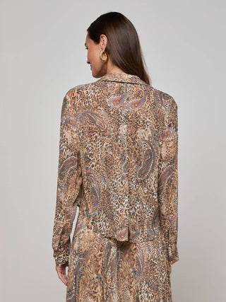 L'Agence Cosette Crop Hi Low Shirt-Blue/Brown Valencia Leopard