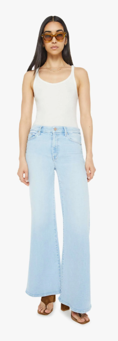 Make your move. 70s-inspired wide-leg jeans with a mid rise, 32-inch inseam and a clean hem. Made from stretch denim, Ball's In Your Court is light blue with fading throughout.