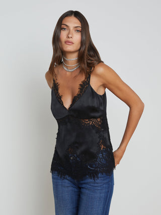 Strategically placed lace insets infuse the Mitsu camisole with a sultry lingerie-inspired vibe.