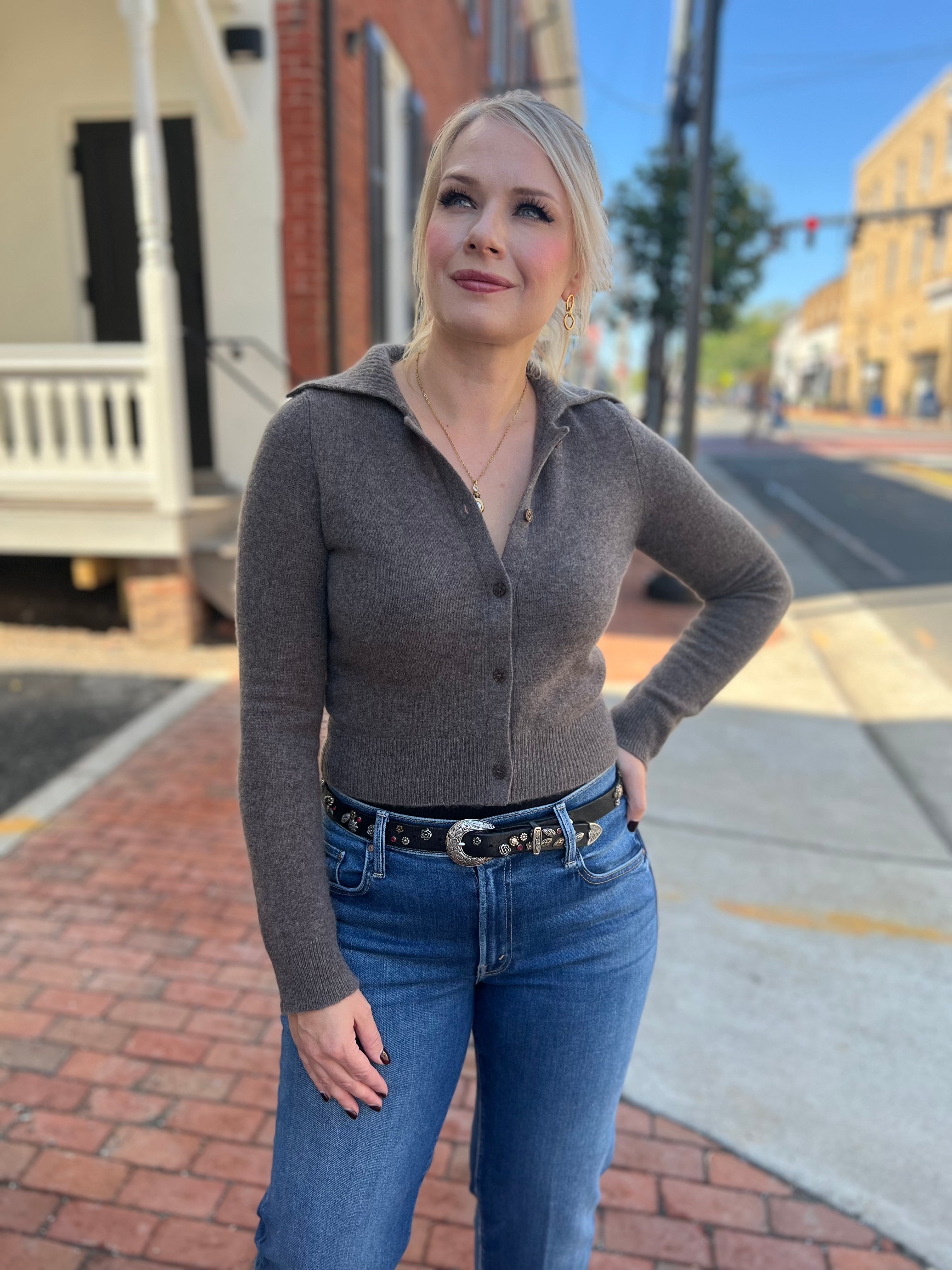 Naadam Coastal Cashmere Collared Cardigan-Cacao