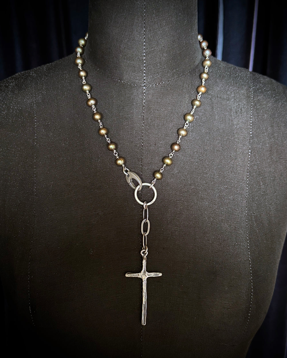 Shannon Koszyk Industrial Peacock Freshwater Pearl Cross Necklace